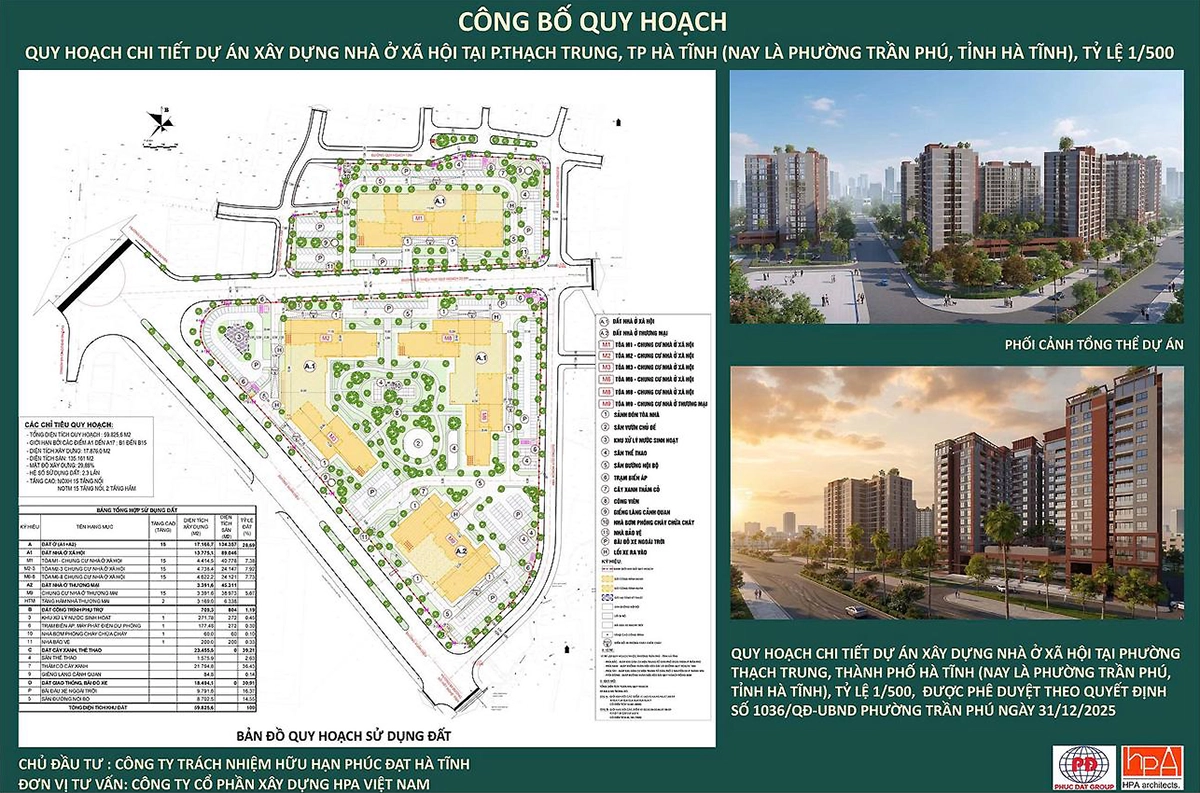 Với quy hoạch chi tiết được công bố chính thức vào ngày 6/1/2026 tại hội nghị do UBND phường Trần Phú phối hợp cùng chủ đầu tư tổ chức, dự án không chỉ cung cấp chỗ ở chất lượng mà còn góp phần hình thành khu đô thị mới đồng bộ, hiện đại, chỉnh trang không gian đô thị và thúc đẩy an sinh xã hội tại TP. Hà Tĩnh.