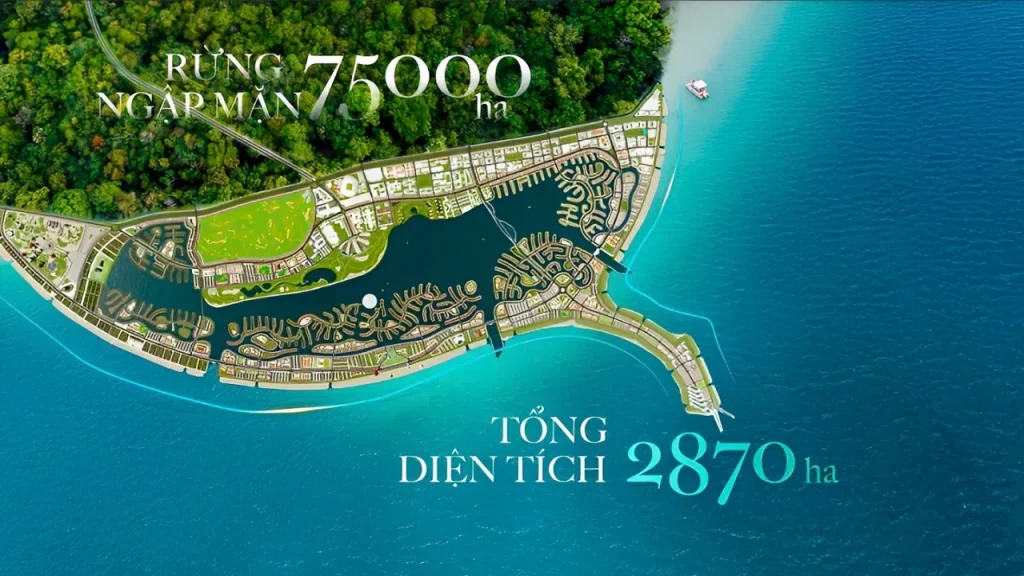 Với tổng diện tích lên đến 2.870 ha, dự án được quy hoạch như một “thành phố xanh” lấn biển, kết hợp hài hòa giữa không gian sống hiện đại, tiện ích cao cấp và hệ sinh thái tự nhiên phong phú của huyện Cần Giờ, huyện ngoại thành ven biển duy nhất của TP. Hồ Chí Minh cũ.